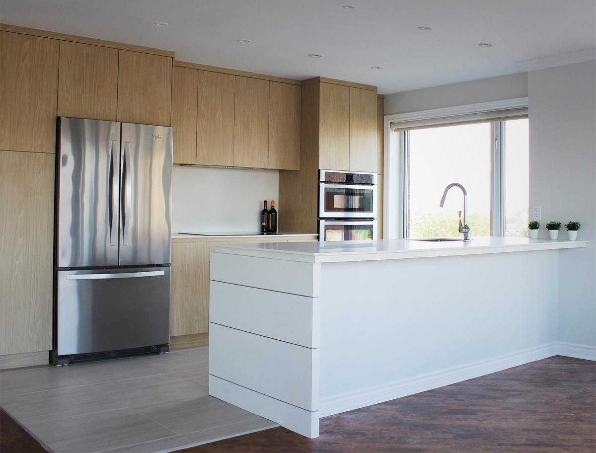 Armoire de cuisine en Stratifier et comptoir de Fenix compact